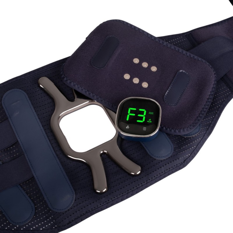 Secretul său constă în designul său inteligent. O puteți folosi ca o centură mare pentru a oferi sprijin mușchiului psoas major sau puteți detașa centura mai mică cu un afișaj și o puteți folosi pe gât sau pe picior. Datorită atașării magnetice a afișajului, totul rămâne pe loc, chiar dacă vă mișcați. Închiderea cu velcro fixează centura pe corp.