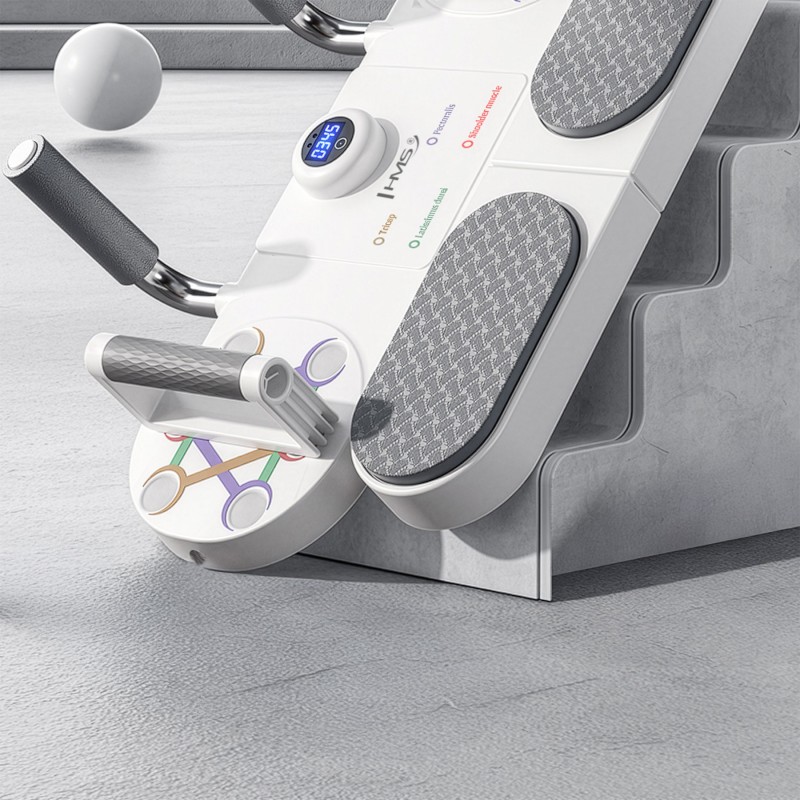 Echipament compact 3-în-1 pentru antrenamente eficiente la domiciliu, prevazut cu un contor ce afiseaza numarul de repetari.