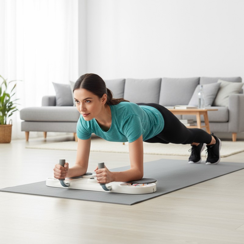Începători și utilizatori intermediari care doresc să își întărească abdomenul, pieptul, umerii, tricepsul și spatele, fără a număra manual repetările.