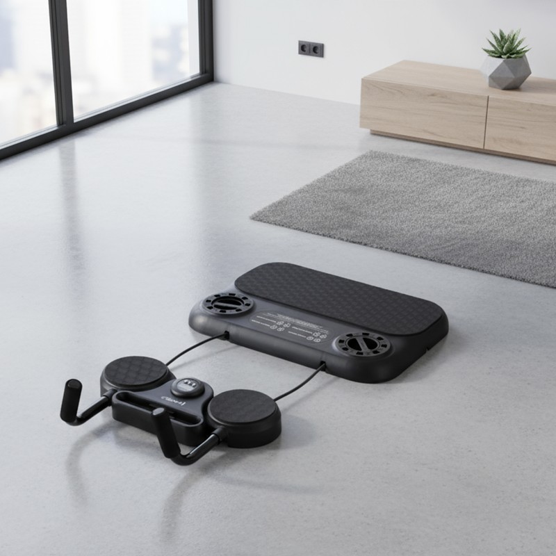 DBP01 HMS este o platformă completă pentru antrenamente la domiciliu, care combină placa pentru plank, sistemul de flotări cu prize multiple și benzi elastice, oferind zeci de exerciții pentru piept, umeri, brațe, abdomen și spate. Display-ul integrat măsoară timpul, iar suportul pentru telefon permite urmărirea ușoară a aplicațiilor de antrenament.