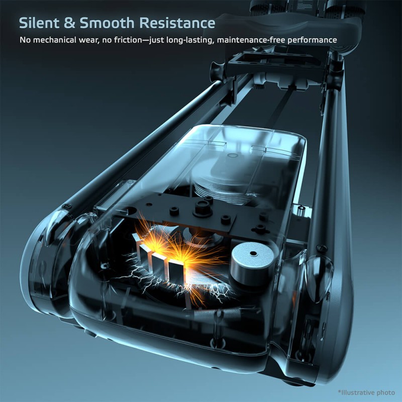 Aparatul de vâslit cu generator oferă o funcționare silențioasă, design pliabil și conectivitate inteligentă prin aplicație pentru un antrenament mai captivant.
