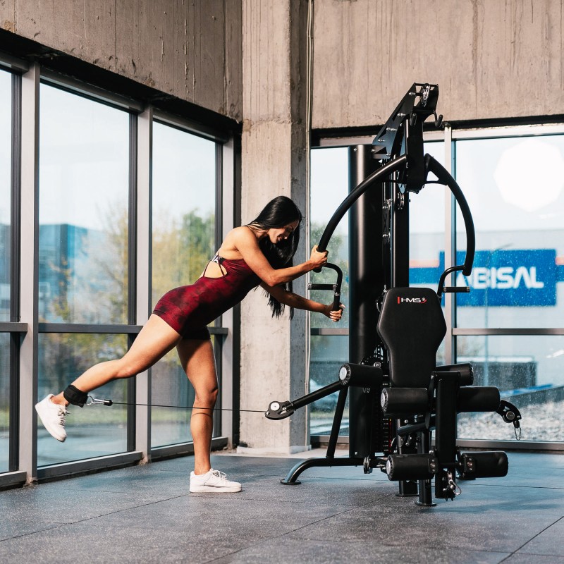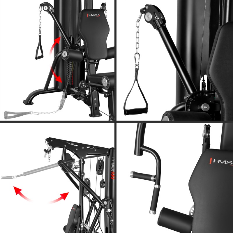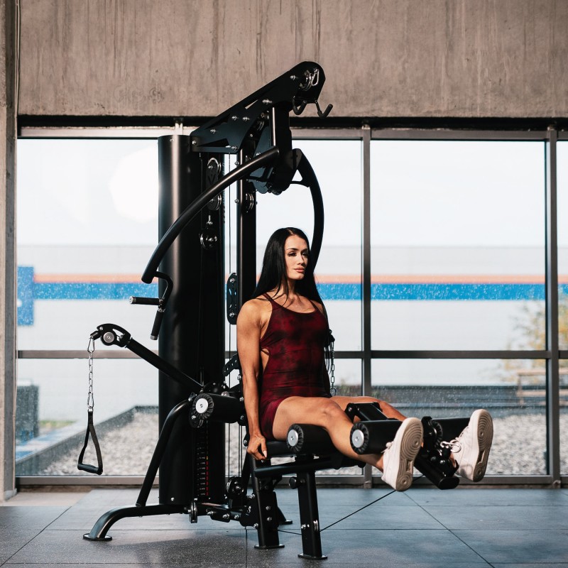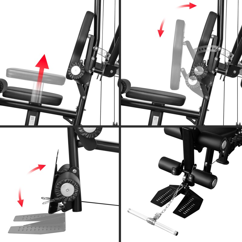 Funcționalitate multifunctională – scripete superior și inferior, presa picioare integrata, brațe pentru fluturari/presa, stație pentru extensia picioarelor.