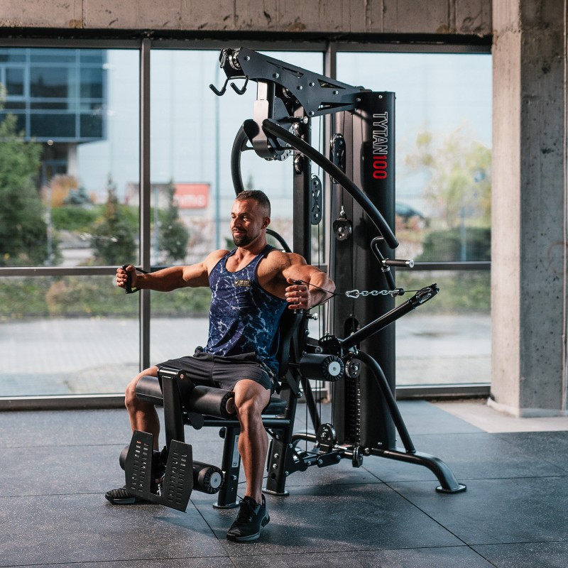TYTAN 100 de la HMS este un aparat multifunctional comercial, cu un turn de greutăți de 90 kg și un raport 1:1 al cablului, oferind o rezistență lină, realistă și un antrenament complet pentru tot corpul într-un spațiu compact. Reglajele ample ale scaunului, spătarului și brațelor permit ajustarea perfectă pentru orice utilizator.