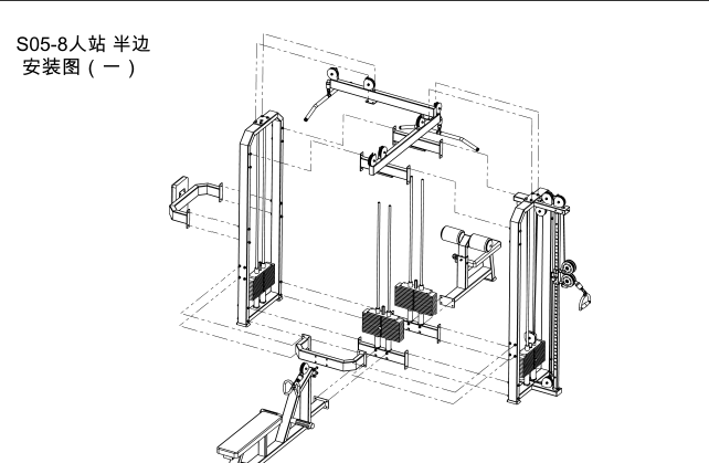 Aparatul multifunctional Sportmann cu 4 statii de antrenament este un echipament stabil si robust datorita cadrului din otel de calitate superioara, cu tuburi ovale care prezinta o rezistenta mai mare la uzura si deformare. Avantajul aparatului este ca avand 4 stive de greutati diferite, permite antrenarea simultana a 4 persoane. Cu acest aparat se pot efectua tractiuni la bara helcometru din sezut (pentru antrenamentul spatelui, în special al mușchilor latissimus dorsi, trapezului și bicepșilor), ramat la scripete inferior din sezut (pentru dezvoltarea muschilor spatelui mijlociu și inferior, mușchilor romboizi și bicepșilor), tractiuni la bara helcometru din picioare ( pentru spate, umeri și bicepși), fluturari la scripetele reglabil (Cable Crossover) (permite efectuarea unor exerciții variate pentru piept, umeri, triceps, bicepși și core, prin ajustarea înălțimii scripetelui).