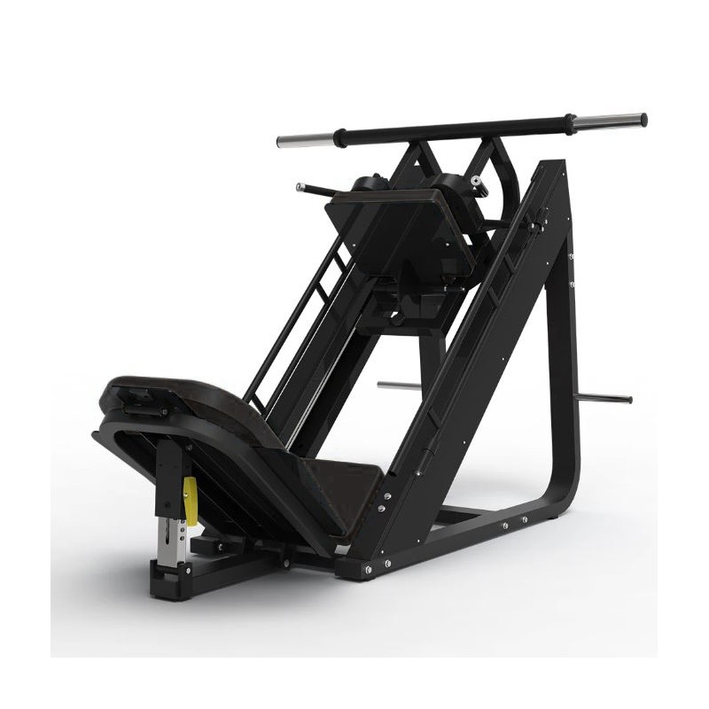 Aparatul 2in1 Presa picioare și Hack Squat este o soluție versatilă și eficienta pentru antrenarea musculaturii partii inferioare a corpului. Conceput pentru uz profesional, în săli de fitness sau centre de antrenament sportiv, acest echipament oferă două funcții esențiale într-o singură structură compactă: presa pentru picioare la 45° și genuflexiuni (Hack Squat).