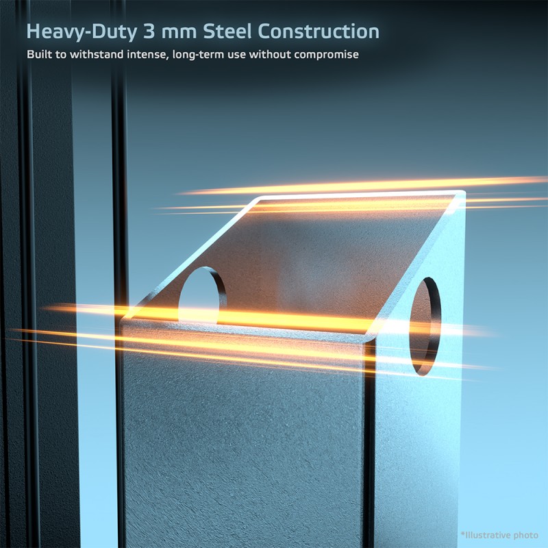 Cadrul este realizat din oțel solid de 3 mm grosime, conceput pentru a rezista celor mai solicitante antrenamente. Fie că execuți exerciții funcționale explozive, tracțiuni grele sau sesiuni intense zilnice, stația rămâne extrem de stabilă.