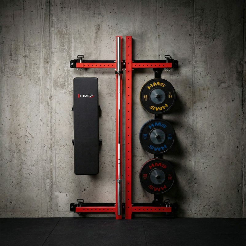 Suportul multifunctional KLT34 HMS Fitness a fost conceput pentru sălile de sport de acasă, unde eficiența spațiului și funcționalitatea sunt esențiale. Datorită construcției cu glisare laterală, nu necesită un tavan înalt, fiind potrivit pentru apartamente, subsoluri și garaje. O structură stabilă, capacitate mare de încărcare și o bancă pliabilă creează o stație completă pentru antrenamente de forță.