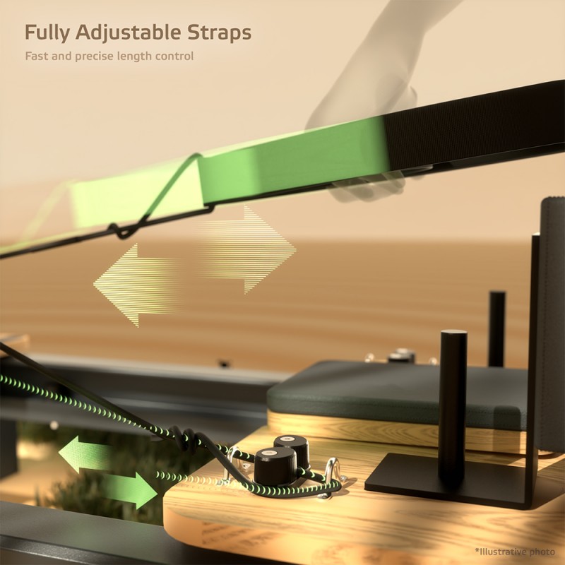 Antrenamentul pe reformerul Comfolder este sinonim cu confortul. Platforma căptușita și glisarea lină și silențioasă îți permit să te concentrezi pe deplin asupra fiecărei mișcări. Lungimea corzilor este ideală pentru toate exercițiile, fie că vizează partea superioară sau inferioară a corpului. De asemenea, poți adăuga sau elimina placa de sărituri în funcție de necesități pentru a-ți personaliza antrenamentul. Pentru un plus de versatilitate, suporturile de umeri detașabile, tetiera reglabilă și căptușeala moale din spumă asigură confort maxim pe toată durata sesiunii.