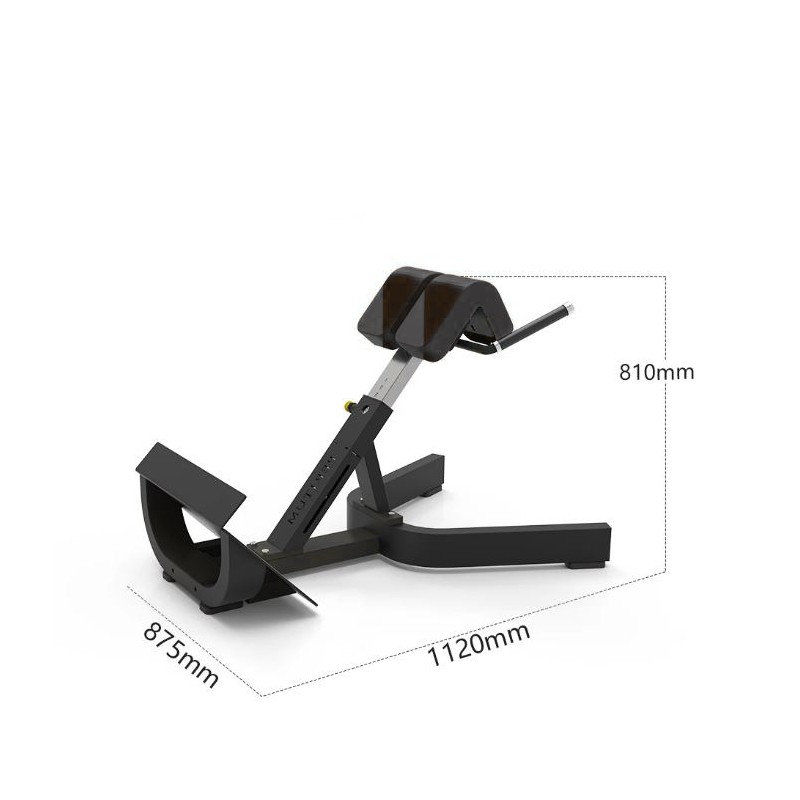 Fabricata dintr-un cadru robust din oțel de calitate Q235, banca oferă stabilitate și durabilitate, chiar și la utilizare intensă. Căptușeala din PU, confortabilă și rezistentă la uzură, asigură o susținere corectă a șoldurilor și pelvisului în timpul mișcărilor de extensie a spatelui, iar poziția înclinată a cadrului ofera confort și stabilitate crescuta.
