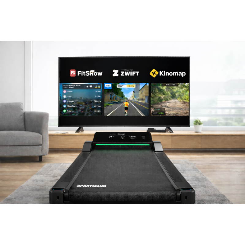 Conectivitatea este un alt punct forte al acestui model. Banda este echipată cu difuzor Bluetooth integrat și suportă conectarea la aplicații populare de fitness precum FitShow, Zwift și Kinomap, oferind antrenamente interactive și motivație suplimentară. Banda Sportmann Moveon este ușor de manevrat și depozitat, fiind ideală pentru spații restrânse.