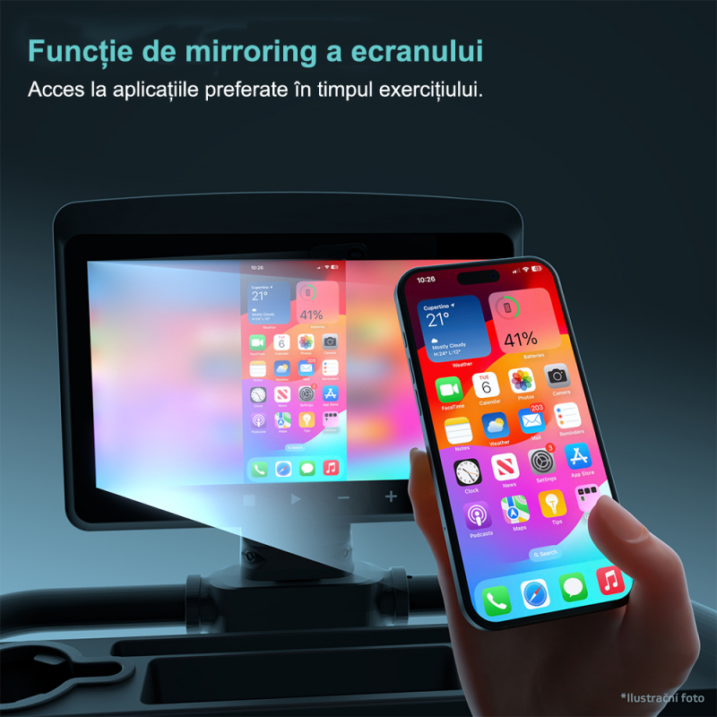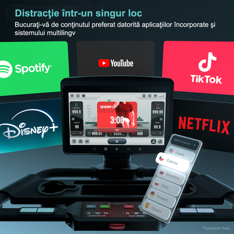 Și dacă vrei și mai multă distracție în timpul antrenamentului, te poți bucura de aplicațiile preinstalate, care pot rula în fundal – astfel încât să poți urmări serialul preferat și în același timp să îți controlezi antrenamentul.