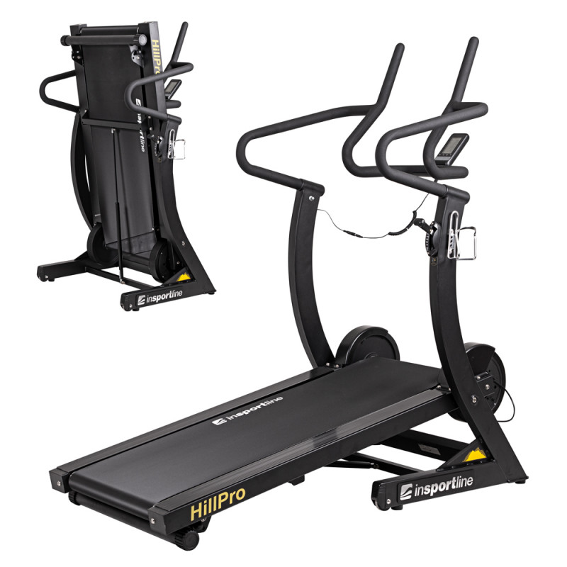 Banda de Alergare inSPORTline Hill Pro, 180KG - banda de alergare fara motor usor de utilizat, care simuleaza mersul in panta, functionare lina si silentioasa, limita de greutate de 180 kg, mecanism practic de pliere.