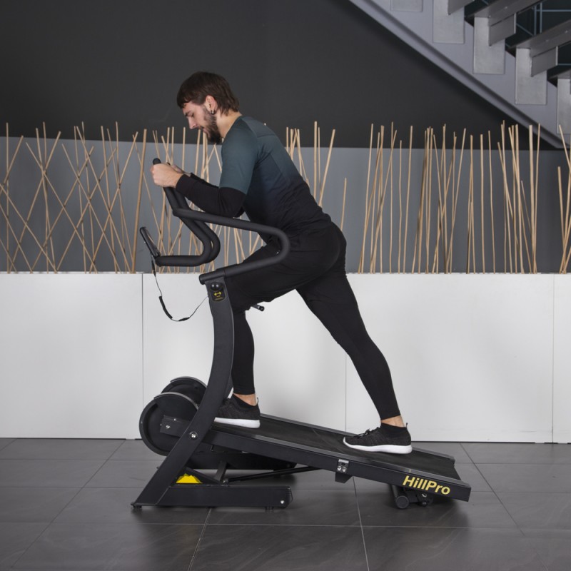 Banda de Alergare inSPORTline Hill Pro este o banda de alergare profesionala fara motor, potrivita pentru uz comercial. Cele doua volane grele (7,5 kg fiecare) si cadrul robust asigura o functionare lina si silentioasa. Inainte de inceperea antrenamentului, utilizatorul poate regla inclinarea benzii de alergare in 4 pozitii diferite (8°, 9°, 11°, 13°). Banda de Alergare inSPORTline Hill Pro ofera o platforma optima pentru antrenamentul de fitness. Actionarea fara motor va permite sa ajustati viteza de alergare/plimbare in functie de conditia dumneavoastra fizica.