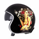 Cască moto cu grafică originală, captușeală moale, închidere simplă cu ajutorul cataramei.