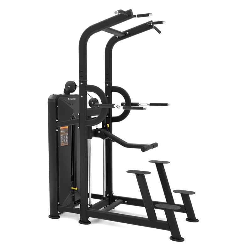 Această stație profesională multifuncțională pentru tracțiuni oferă un antrenament complet al părții superioare a corpului Permite combinarea ușoară a tracțiunilor asistate și a exercițiilor la paralele (dips), fiind ideală pentru utilizatori de toate nivelurile de pregătire – de la începători până la sportivi avansați care doresc să-și îmbunătățească tehnica și să-și dezvolte forța. Datorită posibilității de a comuta rapid între exerciții, fără întreruperi, poți avea un antrenament eficient chiar și atunci când timpul este limitat.