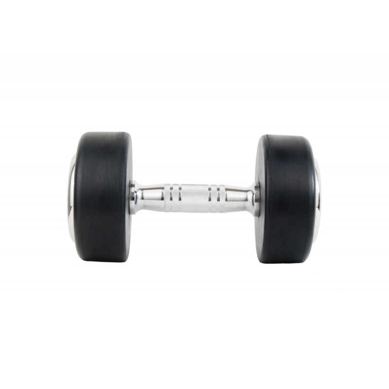 Gantera cauciucata 10 kg Deluxe de la Sportmann este ideala pentru exercitii ale musculaturii spatelui, pieptului si a bratelor, acasa sau la sala. Gantera este realizata din fier, cu suprafata cauciucata rezistenta la umezeala si uzura. Manerul cu finisaj cromat are forma ergonomica si este prevazut cu striatii pentru o prindere sigura a ganterei. Greutatile sunt cauciucate, material care protejeaza impotriva deteriorarii si amelioreaza impactul in momentul ciocnirii de un obiect/suprafata. Gantera cauciucata profesionala este destinata antrenamentelor de dezvoltare a muschilor biceps, triceps si poate fi folosita atat pentru uz casnic, cat si in centrele de fitness datorita rezistentei sale.