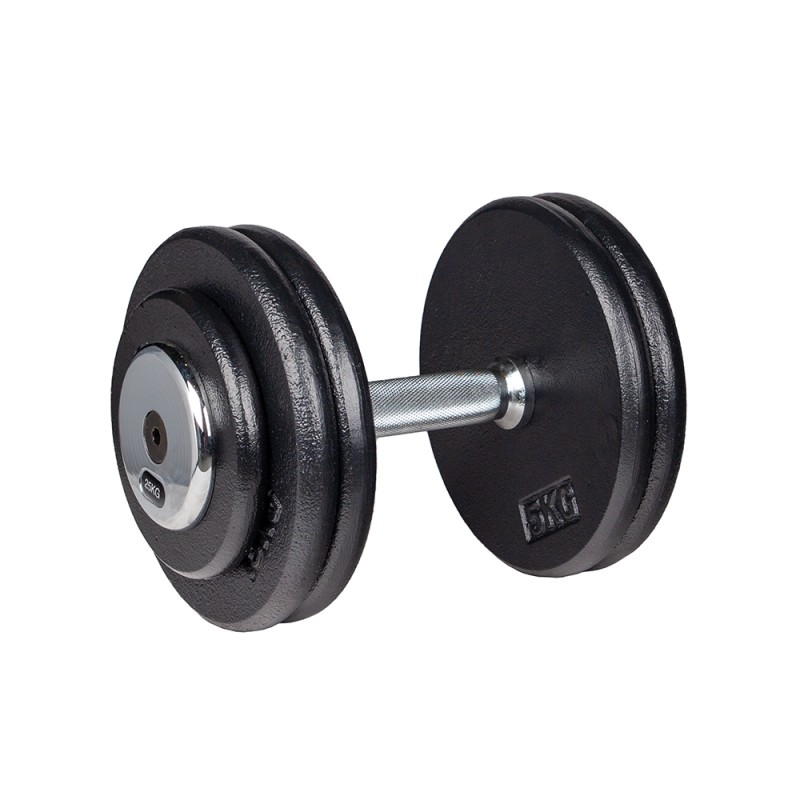 Ganteră cromată, formă ergonomică, suprafață antiderapantă.