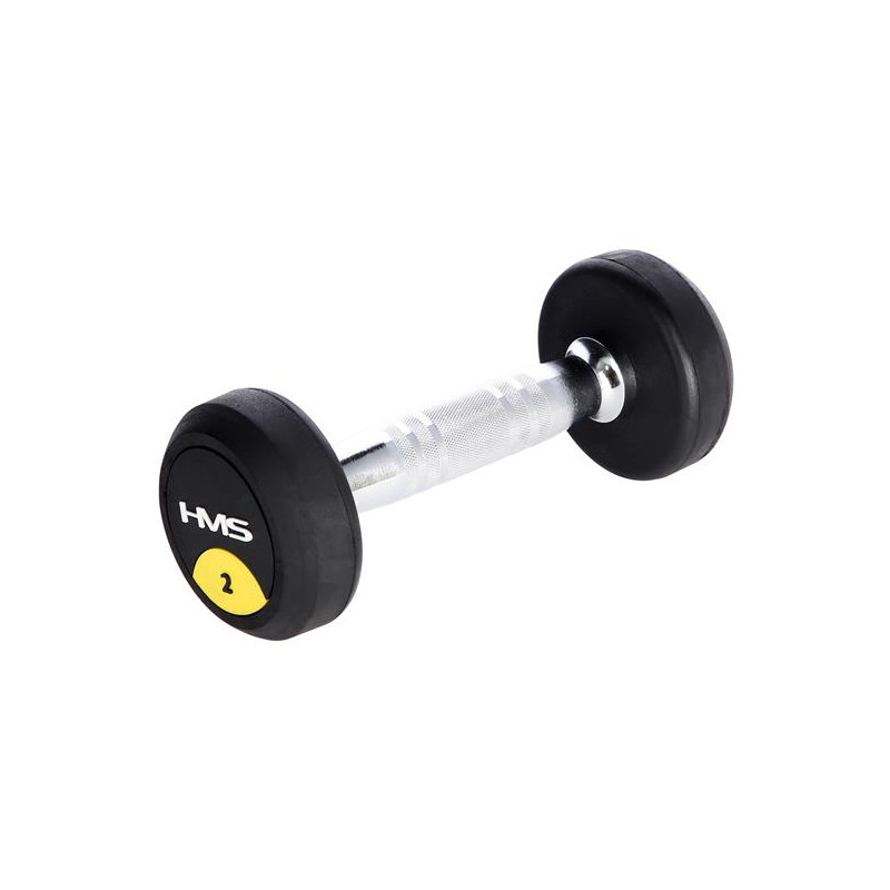 Gantera cu greutate fixa HMS HG PRO 2 kg - gantera cauciucata cu greutate fixa confectionata din fier, cu cauciuc pe greutati pentru o durata de viata mai mare si striatii pe maner pentru o prindere mai ferma.