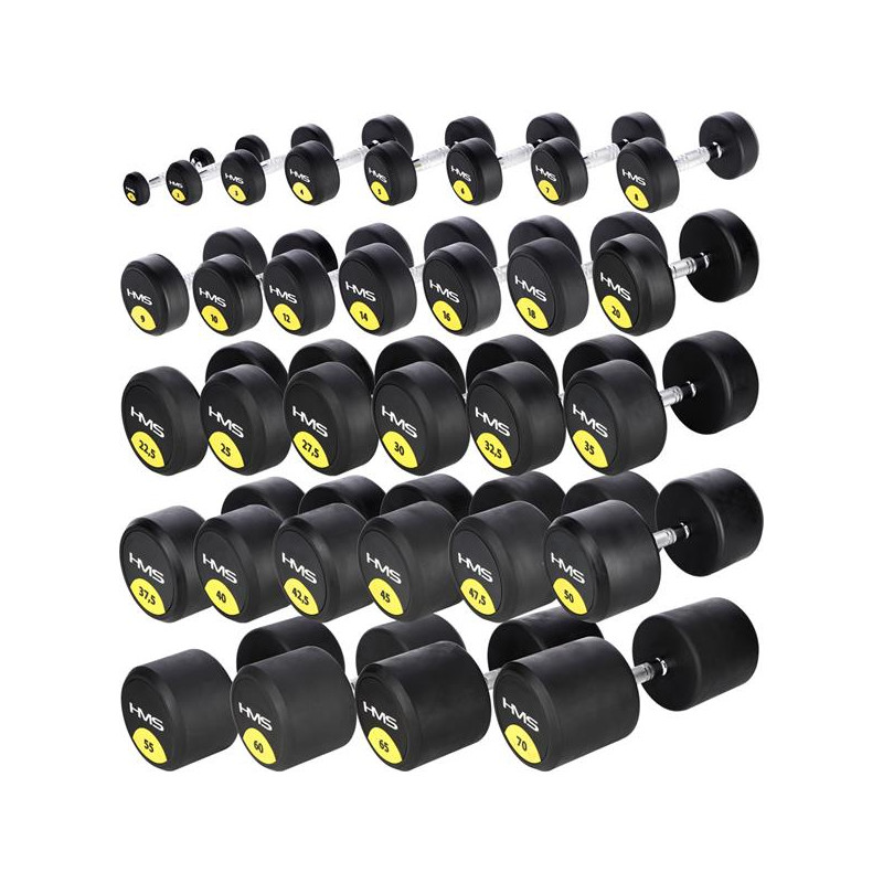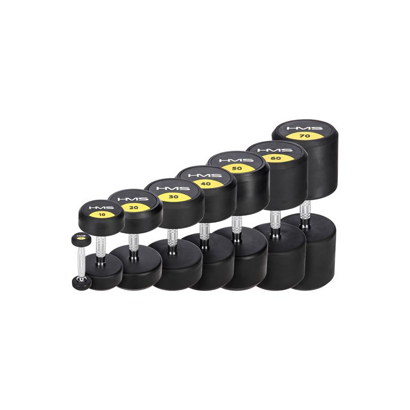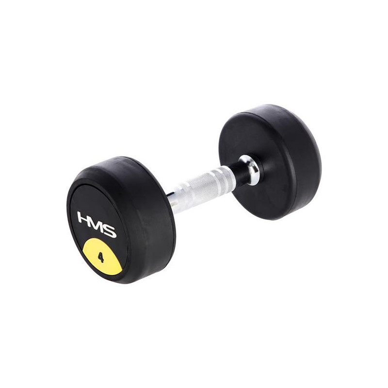 Gantera cu greutate fixa HMS HG PRO 4 kg - gantera cauciucata cu greutate fixa confectionata din fier, cu cauciuc pe greutati pentru o durata de viata mai mare si striatii pe maner pentru o prindere mai ferma.