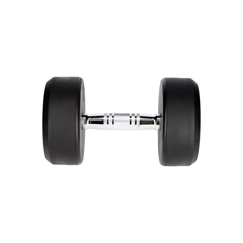 Gantera cauciucata cu greutate fixa confectionata din fier, cu cauciuc pe greutati pentru o durata de viata mai mare si striati pe maner pentru o prindere mai ferma.
