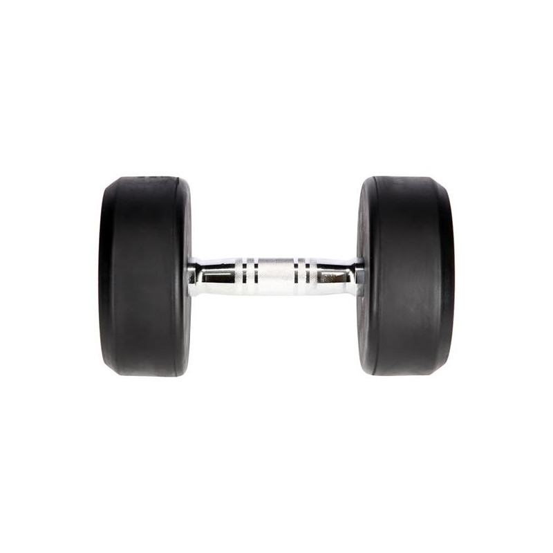 Gantera cauciucata cu greutate fixa confectionata din fier, cu cauciuc pe greutati pentru o durata de viata mai mare si striati pe maner pentru o prindere mai ferma.
