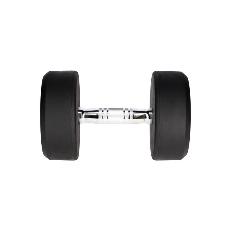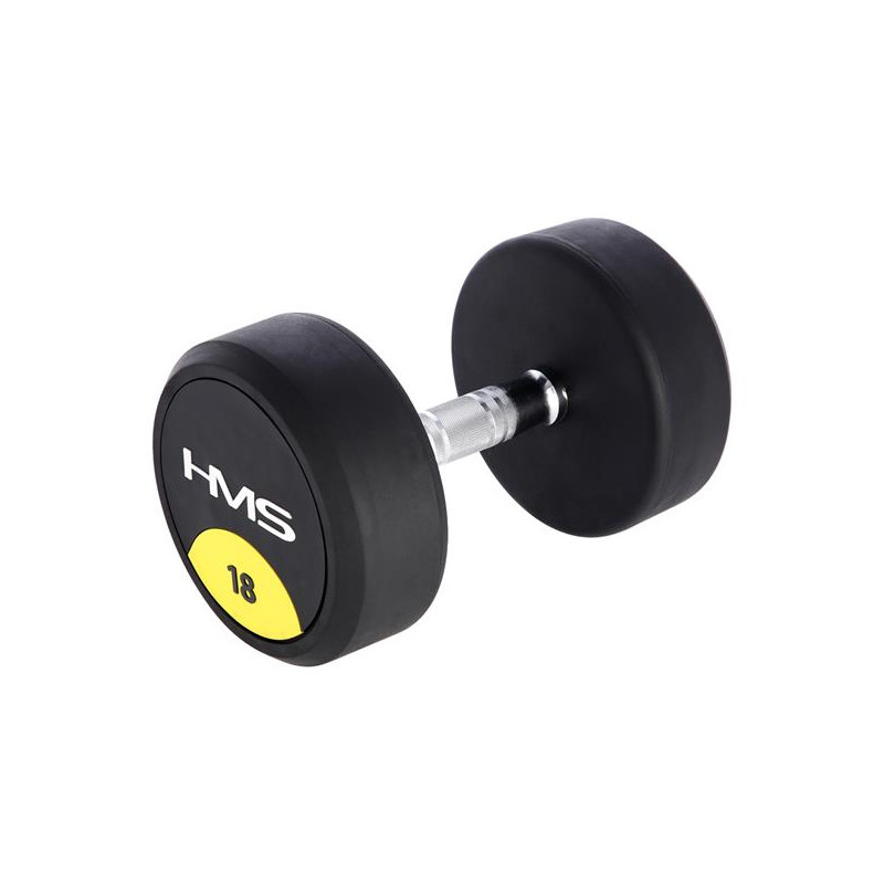 Gantera cu greutate fixa HMS HG PRO 18 kg - gantera cauciucata cu greutate fixa confectionata din fier, cu cauciuc pe greutati pentru o durata de viata mai mare si striatii pe maner pentru o prindere mai ferma.