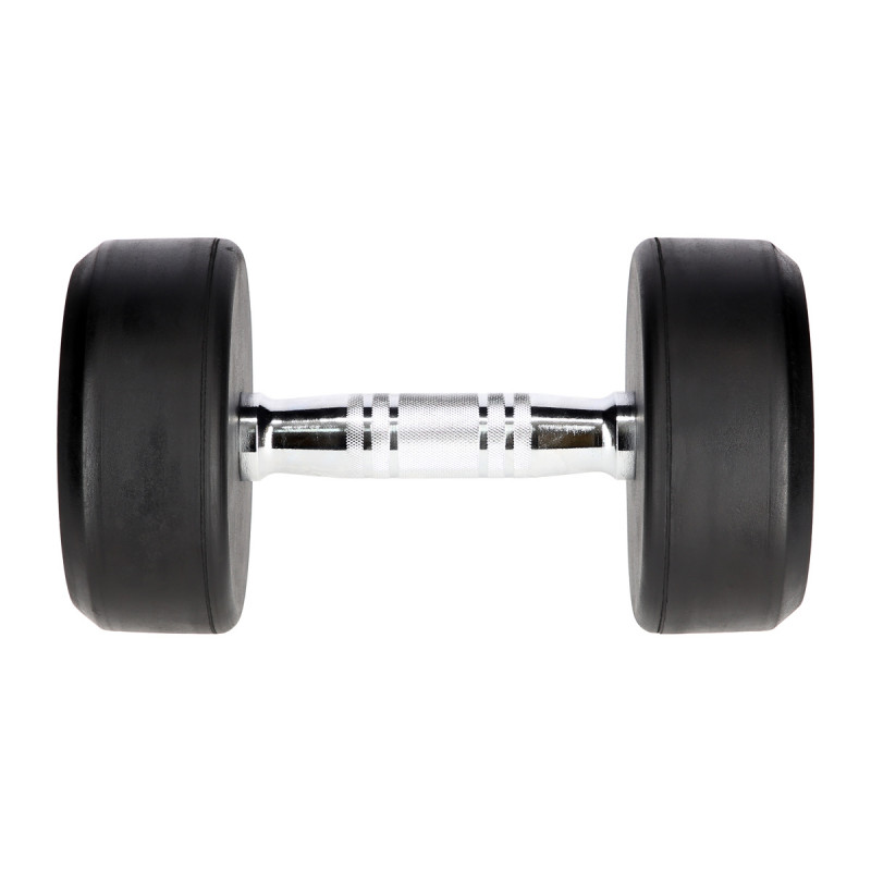 Gantera cauciucata cu greutate fixa confectionata din fier, cu cauciuc pe greutati pentru o durata de viata mai mare si striati pe maner pentru o prindere mai ferma.