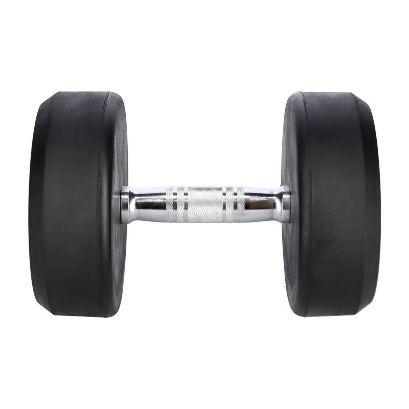 Gantera cauciucata cu greutate fixa confectionata din fier, cu cauciuc pe greutati pentru o durata de viata mai mare si striati pe maner pentru o prindere mai ferma.