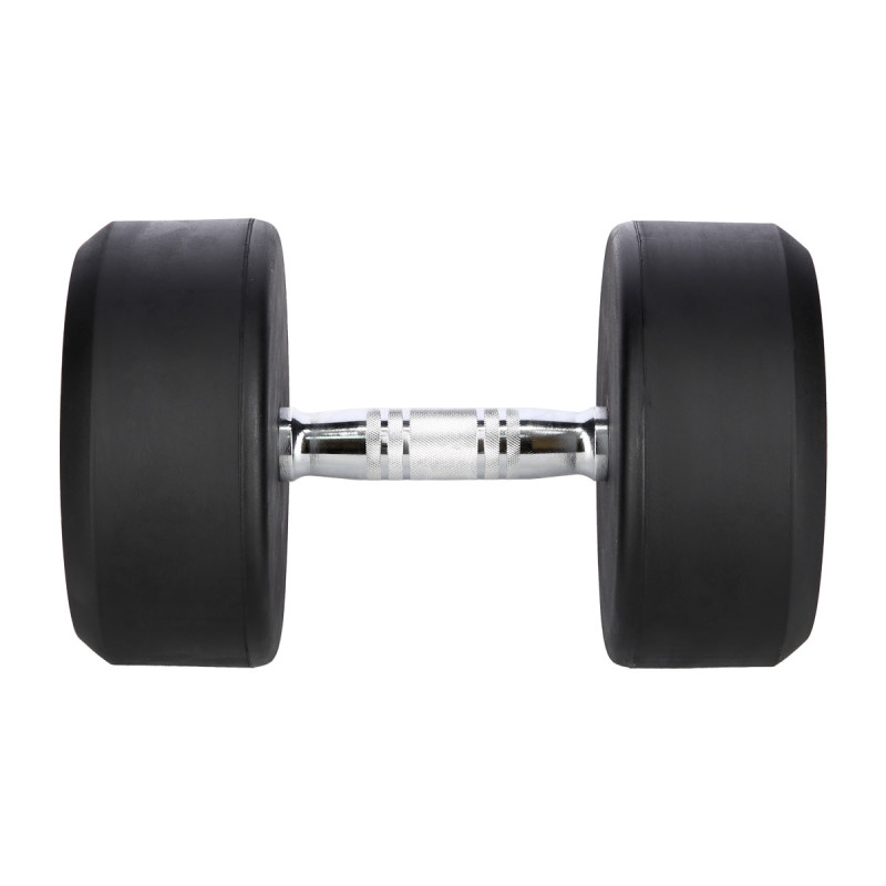 Gantera cauciucata cu greutate fixa confectionata din fier, cu cauciuc pe greutati pentru o durata de viata mai mare si striati pe maner pentru o prindere mai ferma.