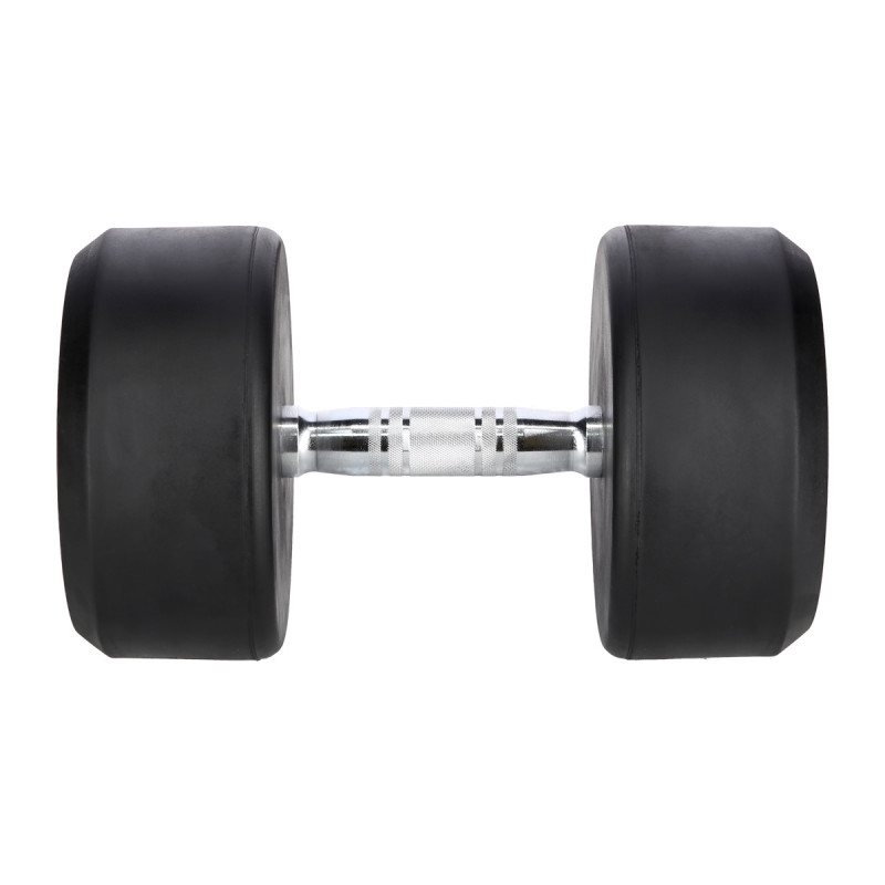 Gantera cauciucata cu greutate fixa confectionata din fier, cu cauciuc pe greutati pentru o durata de viata mai mare si striati pe maner pentru o prindere mai ferma.
