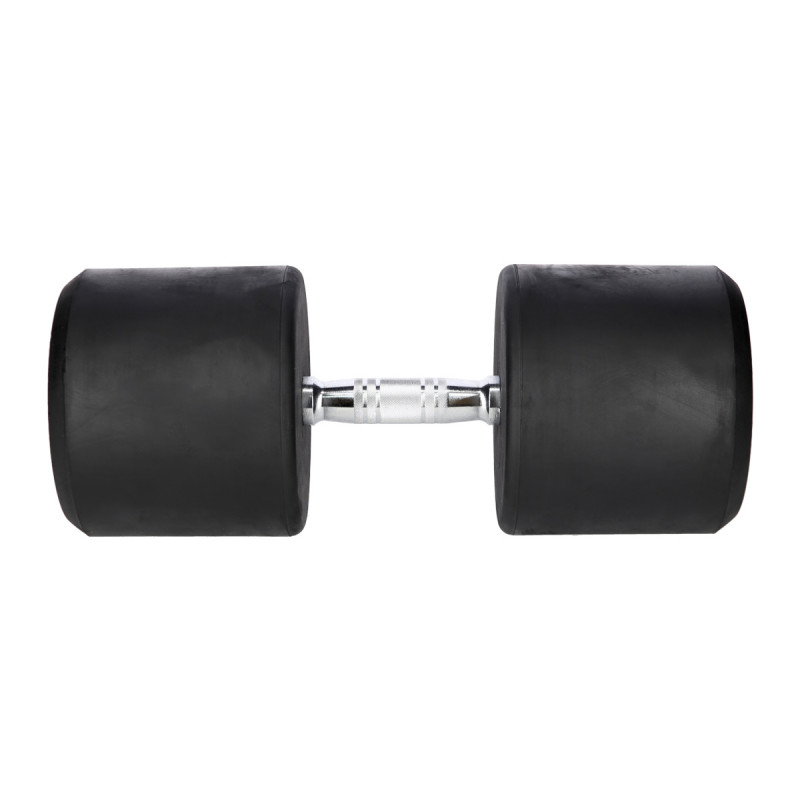 Gantera cauciucata cu greutate fixa confectionata din fier, cu cauciuc pe greutati pentru o durata de viata mai mare si striati pe maner pentru o prindere mai ferma.