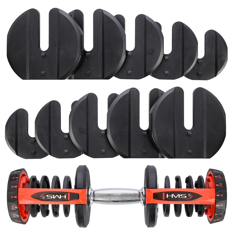 Gantera reglabila HMS SR80 include o bara, 10 discuri si baza. Produsul este o solutie perfecta pentru persoanele care fac exercitii fizice acasa, dar va funcționa foarte bine si intr-o sala de antrenament, inlocuind un intreg stand cu gantere traditionale.
