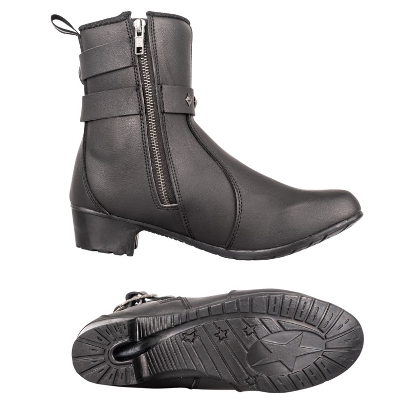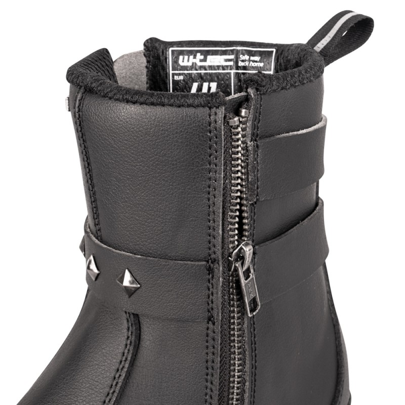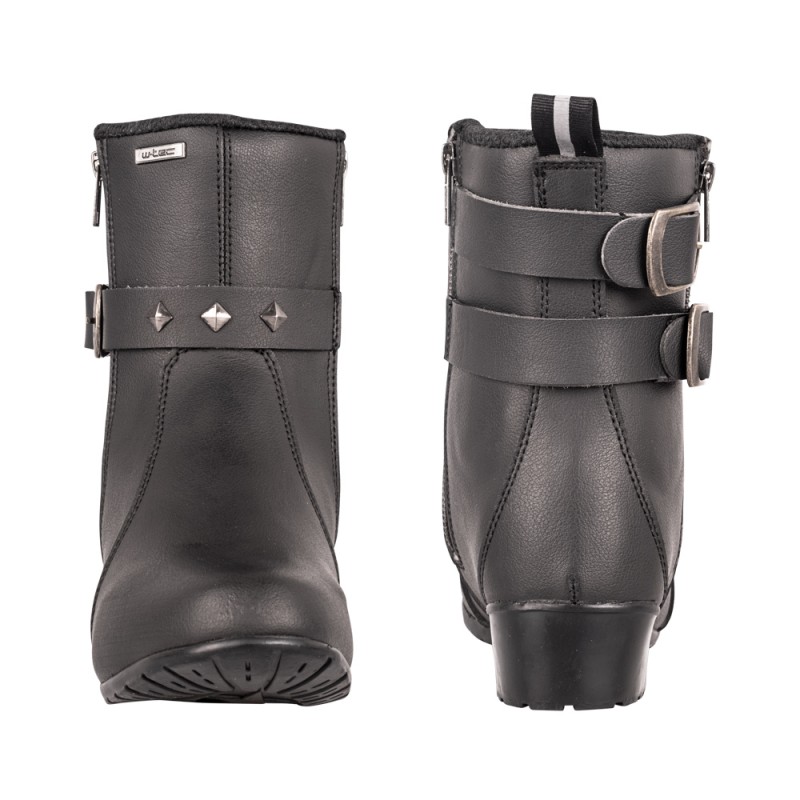Designul ghetelor W-TEC Petronila atrage imediat privirea – nici nu par a fi încălțăminte moto. Asta datorită tocului, un element rar întâlnit la ghetele moto. Detaliile acoperite, cum ar fi curelele cu catarame metalice și capsele în formă de diamant, completează aspectul elegant și feminin al încălțărilor.