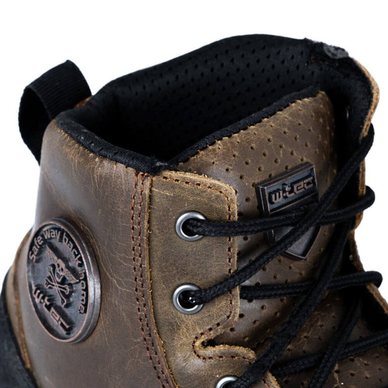 La drum, vei aprecia caracteristicile practice care asigură protecție și confort – precum panoul ranforsat pentru schimbătorul de viteze, vârful și călcâiul întărite, protecția pentru gleznă și talpa din cauciuc antiderapantă, rezistentă la ulei și combustibil. Ghetele au închidere cu șireturi, o buclă practică pentru încălțare rapidă și o limbă perforată ce îmbunătățește ventilația. Datorită branțului ergonomic detașabil confortul este garantat nu doar pe motocicletă, ci și la plimbare.