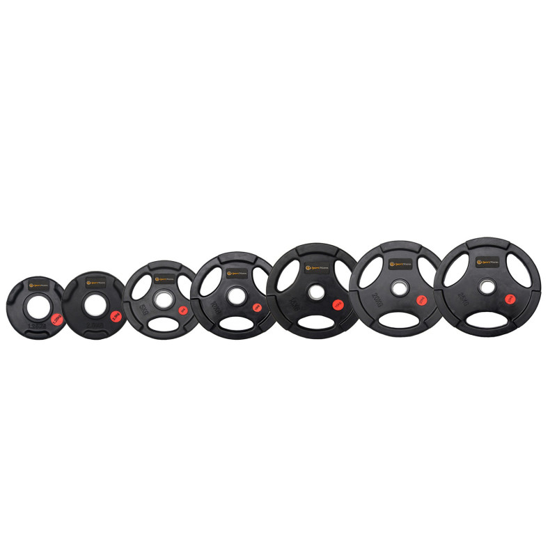 Greutate cauciucata Sportmann Deluxe 20 kg / 51 mm - greutate cauciucata olimpica de 20 kg, prevazuta cu manere aderente, inel metalic, rezistenta la uzura, compatibila cu barele care au diametrul de 50 mm.