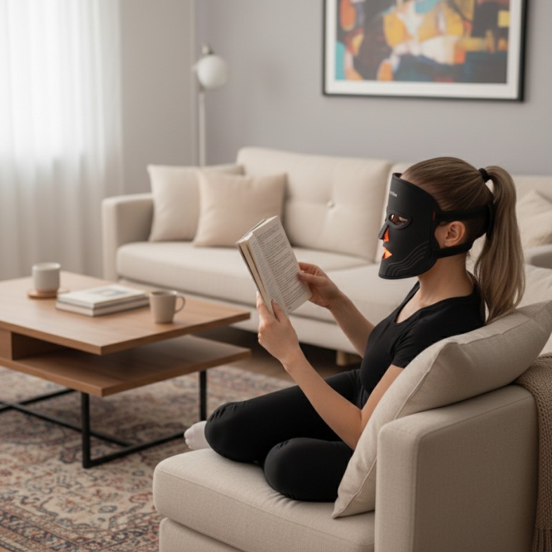 Radora este concepută să se adapteze perfect formei feței tale. Siliconul ultra-subțire se mulează delicat pe contururile faciale, iar banda reglabilă cu prindere tip velcro asigură o fixare rapidă, sigură și confortabilă. Protecția pentru ochi, detașabilă, îți permite să te relaxezi complet chiar și la intensități mai mari ale luminii. Masca este atât de ușoară și naturală încât poți citi, urmări emisiunea preferată sau pur și simplu te poți bucura de un moment de liniște în timp ce o folosești.