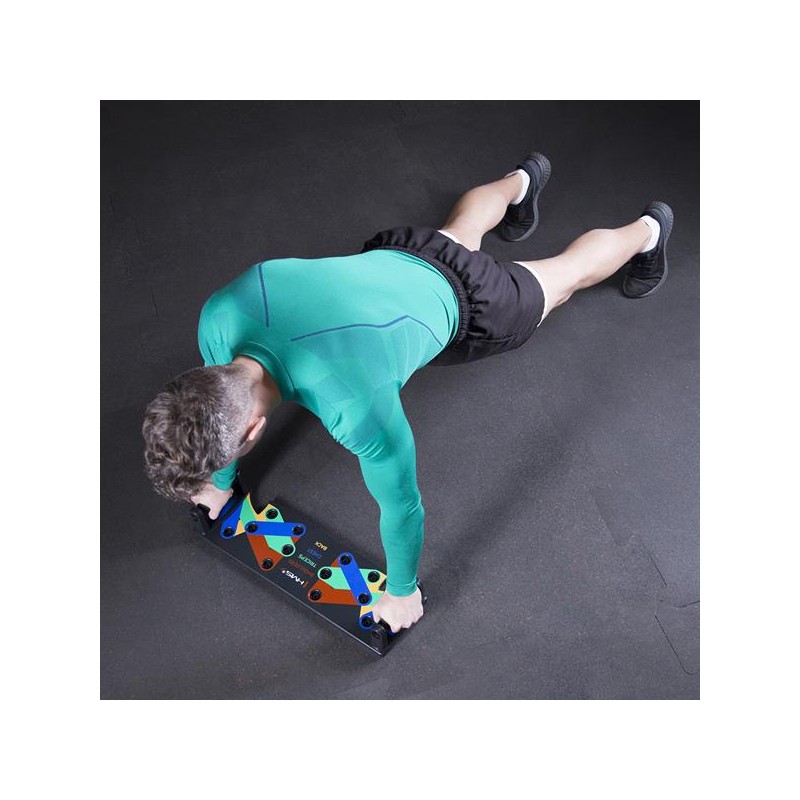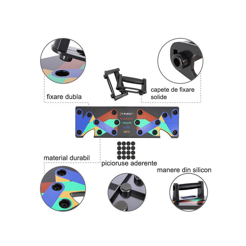PU10 MULTI de la HMS este o placă inovatoare și multifuncțională, concepută pentru efectuarea flotărilor în poziție înainte (push-ups).