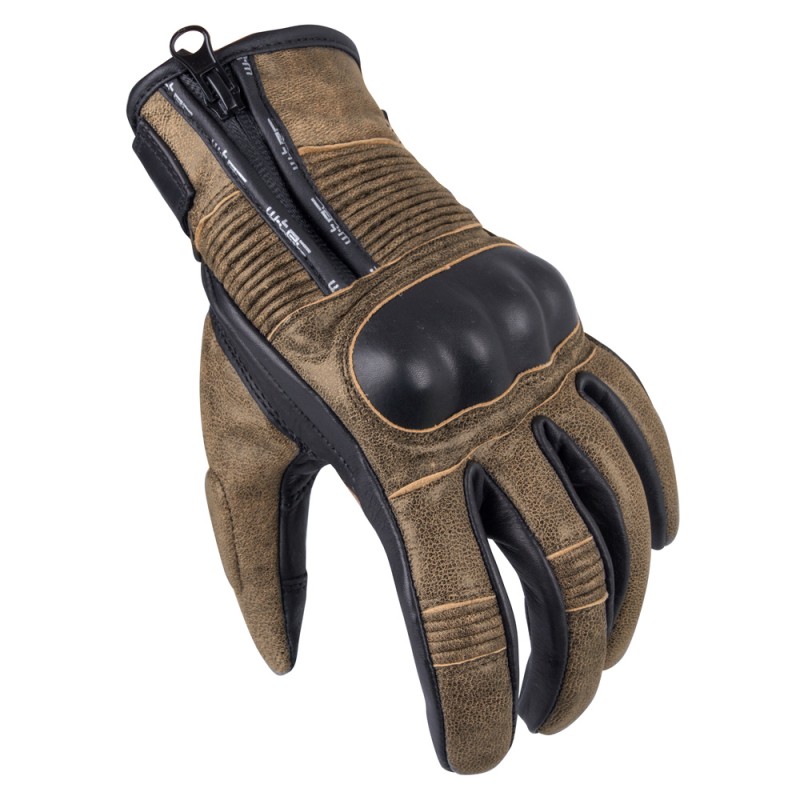 Mănușile moto W-TEC sunt mănuși moto de calitate, cu design elegant. Protecțiile de poliuretan protejează mâinile în eventualitatea unei căzături, dar și adaugă un plus de eleganță texturii de piele. În plus, la nivelul degetului mare se află o protecție de spumă. Stratul dublu de material și cusăturile duble din zonele mai solicitate contribuie la rezistența și siguranța mănușilor. Perforațiile de la nivelul degetelor asigură o aerisire optimă, pentru un nivel ridicat de confort. Fermoarul scurt din zona încheieturii mâinii complimentează designul elegant al mănușilor.