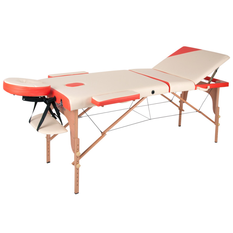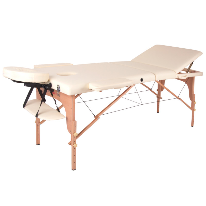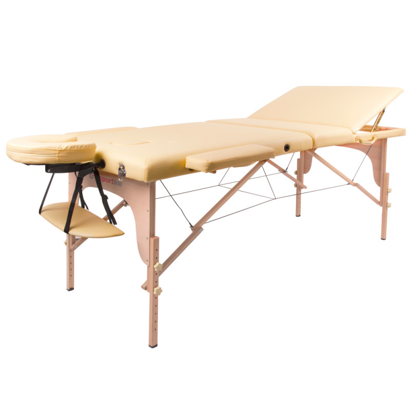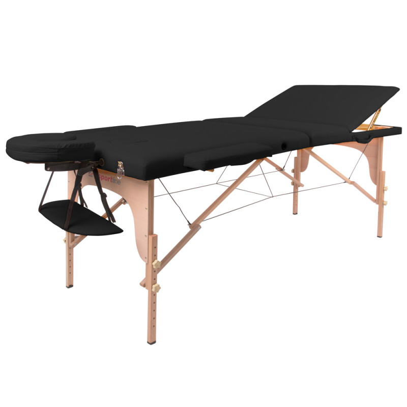 Masă din Lemn pentru Masaj inSPORTline Japane - din 3 bucăți - potrivită pentru încăperi cu temperaturi constante, pliabilă, cadru cu greutate redusă pentru transport ușor, mânere detașabile, suport pentru picioare înclinabil.