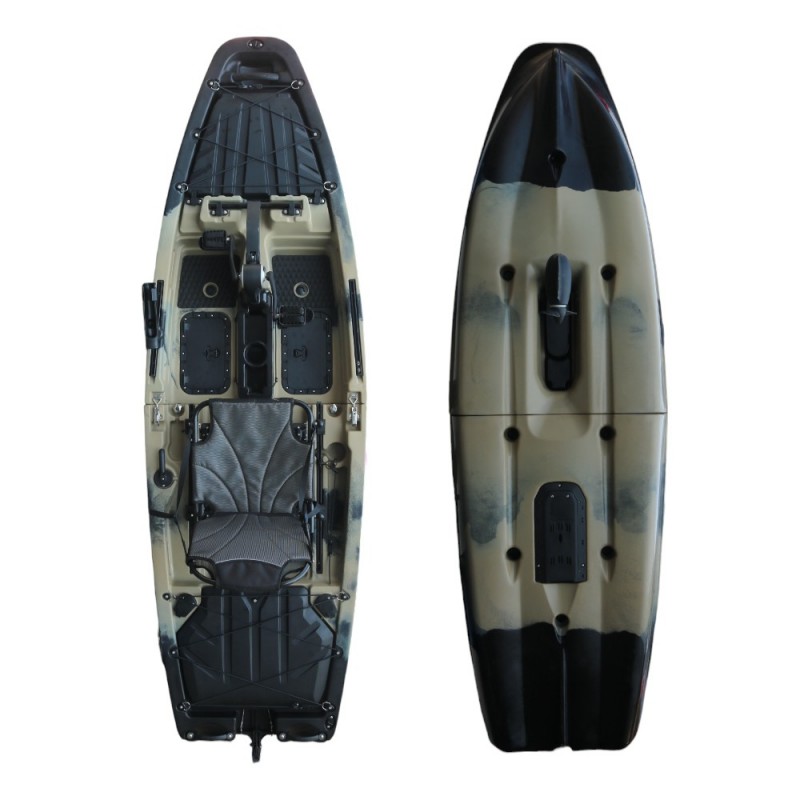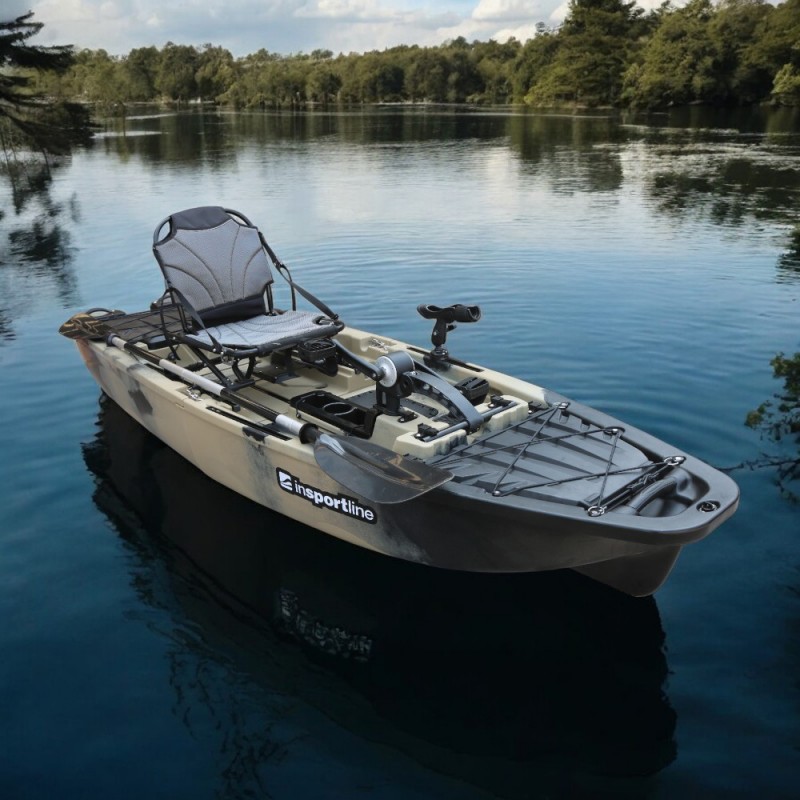 Descoperă un nou nivel de confort pe apă cu caiacul pliabil cu pedale inSPORTline Rhoner Desert Camo!