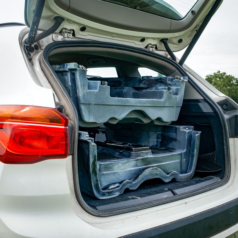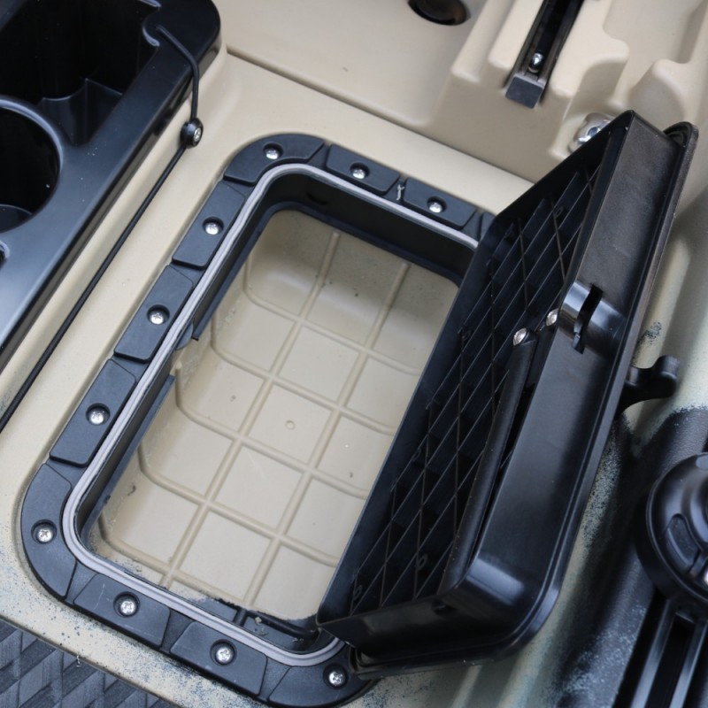 Datorită construcției ingenioase din două piese, îl poți pune ușor în mașină sau depozita în pivniță. Scaunul este confortabil și se poate plia sau scoate complet — în funcție de cât spațiu vrei pentru echipamente. Dispune de mai multe compartimente de depozitare impermeabile — în față, în spate și două cutii în mijloc — unde poți pune de la gustări până la echipamente nautice serioase sau chiar pește viu. Datorită protecției UV, soarele poate străluci cât vrea — materialul rezistă și nu crapă.