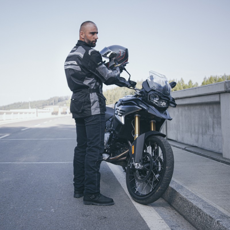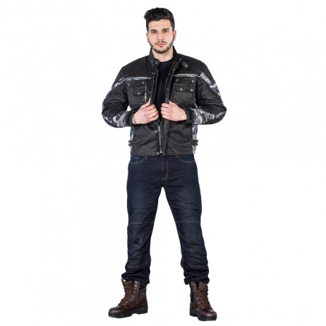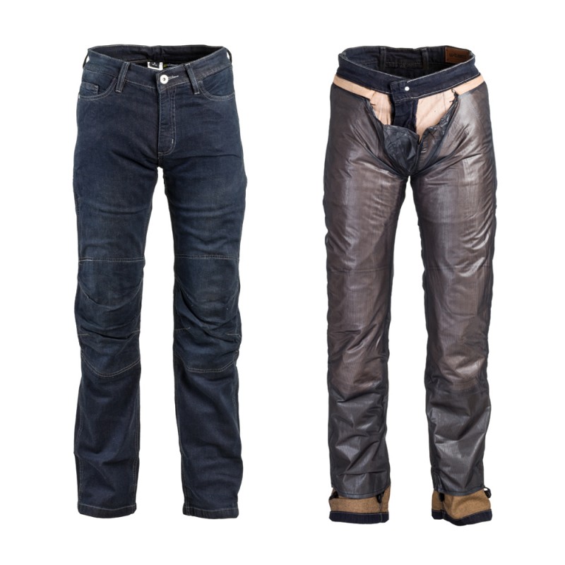 Pantaloni moto pentru bărbați realizați din denim, membrană detașabilă Reissa, întărituri Kevlar, căptușeală moale din bumbac, multiple buzunare.