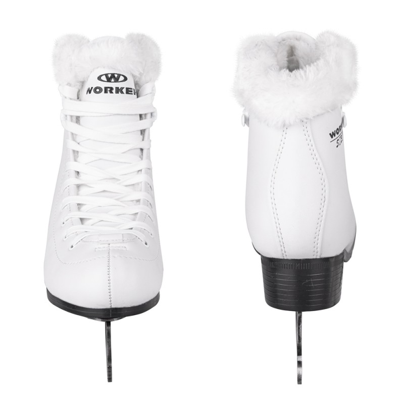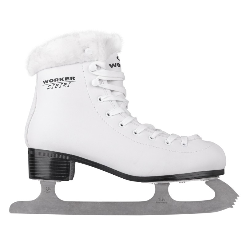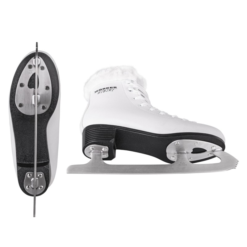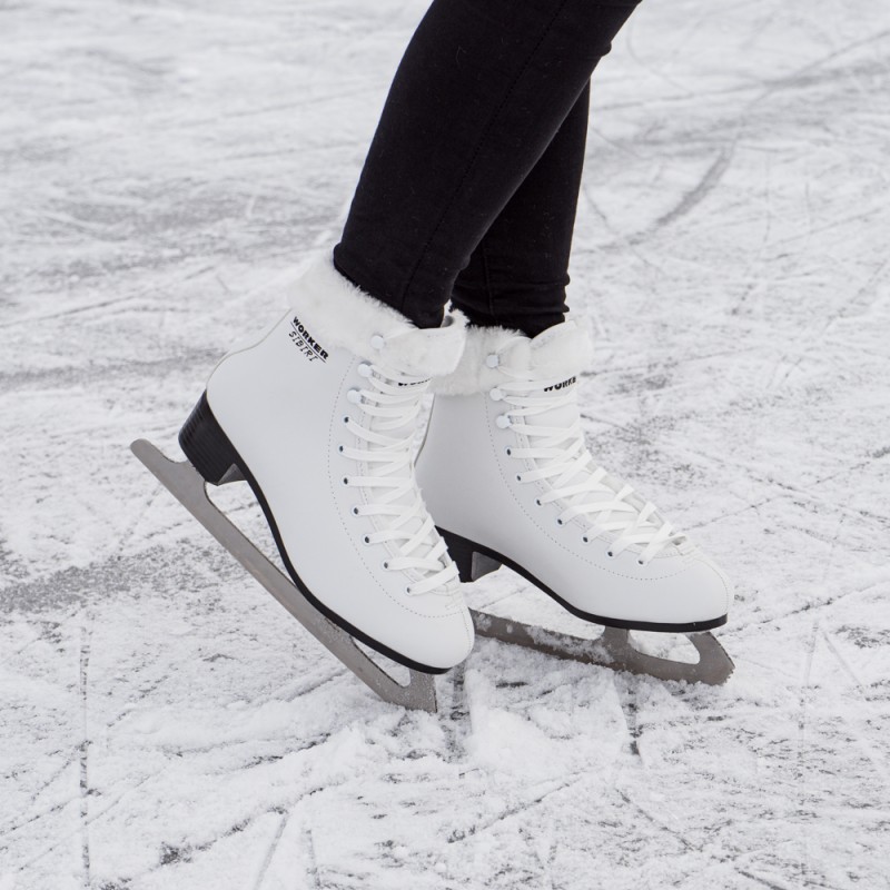 Patine pentru femei cu o captuseala din blanita pentru pastrarea caldurii in interior, fixare cu siret, lama din otel inoxidabil, design ce nu se demodeaza.