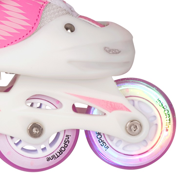 Roele sunt ușor de încălțat datorită buclei practice, făcând procesul accesibil chiar și pentru cei mici, fără ajutorul părinților. Roțile din PU, cu o duritate optimă de 82A și rulmenți ABEC 7 Carbon, oferă o deplasare lină și silențioasă – fie pe o pistă de biciclete, fie prin curte. Cadrul din polipropilenă este solid, dar ușor, reducând solicitarea inutilă asupra piciorului și oferind stabilitate excelentă.