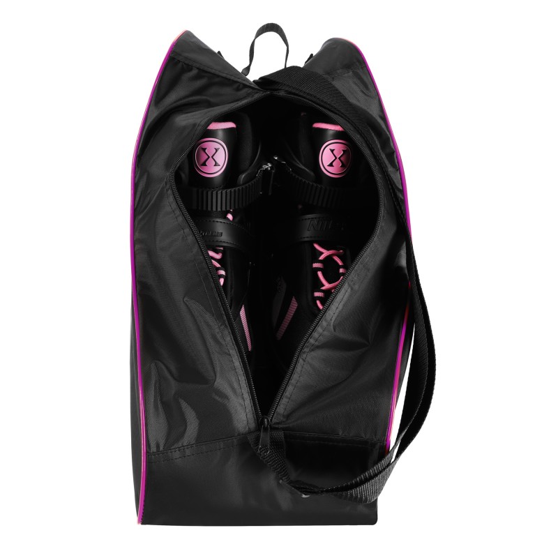 Geanta permite transportul comod al unei perechi de role, eliminând nevoia de a purta echipamentul în mână. Este o soluție practică pentru utilizarea în oraș și pentru activitățile în aer liber.