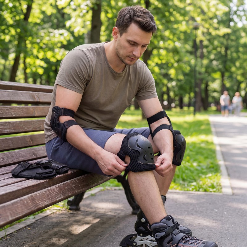 Datorită sistemului de fixare cu velcro și a curelelor elastice, protectiile se mulează bine pe corp și rămân bine fixate în timpul mișcării. Această soluție asigură confort și libertate de mișcare în timpul mersului.