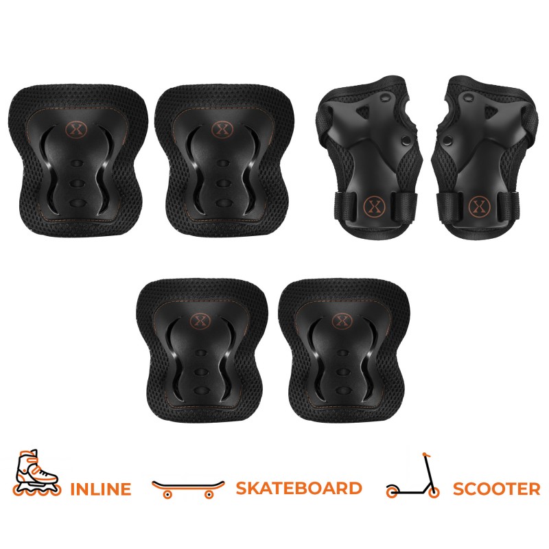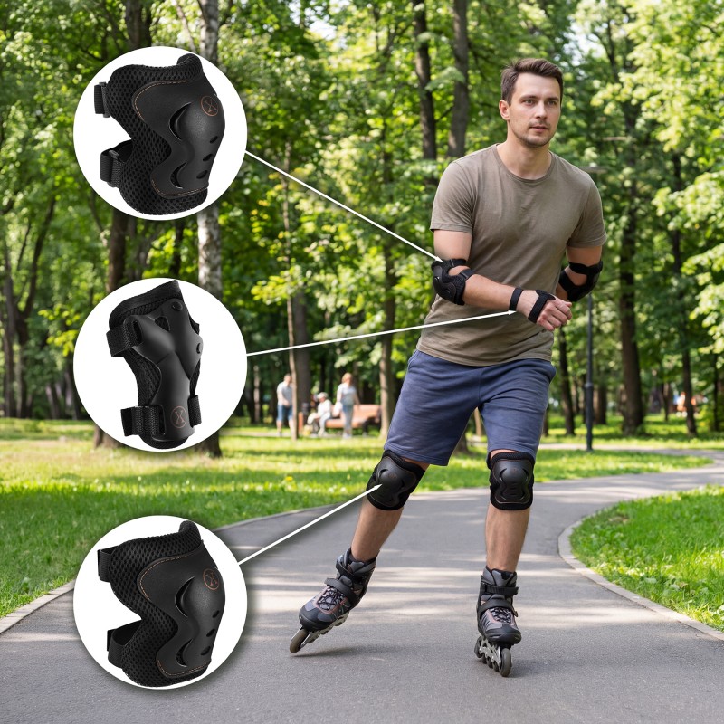 Setul de protecții este un echipament complet format din 6 piese (genunchiere, cotiere și protectii pentru încheieturi), conceput pentru role, skateboard și trotinetă, oferind protecție sigură, confort și un design modern și stilat.