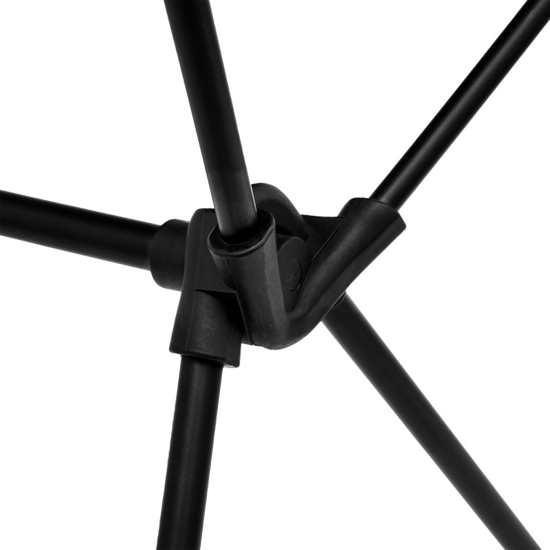 Cadrul scaunului este realizat din oțel durabil cu profil de 15 mm, oferind stabilitate chiar și pe terenuri denivelate. Construcția cadrului a fost gândită pentru a oferi siguranță utilizatorului – fie că este așezat pe iarbă, nisip, pietriș sau sol forestier. Vopsirea în câmp electrostatic protejează componentele metalice împotriva umezelii și coroziunii, făcând scaunul rezistent la utilizarea intensivă în diverse condiții meteo.