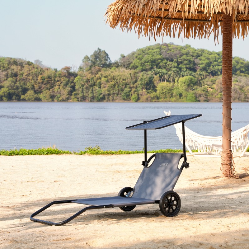 Sezlong cu roti Nils NC3307, practic si usor de transportat, parasolar inclus.