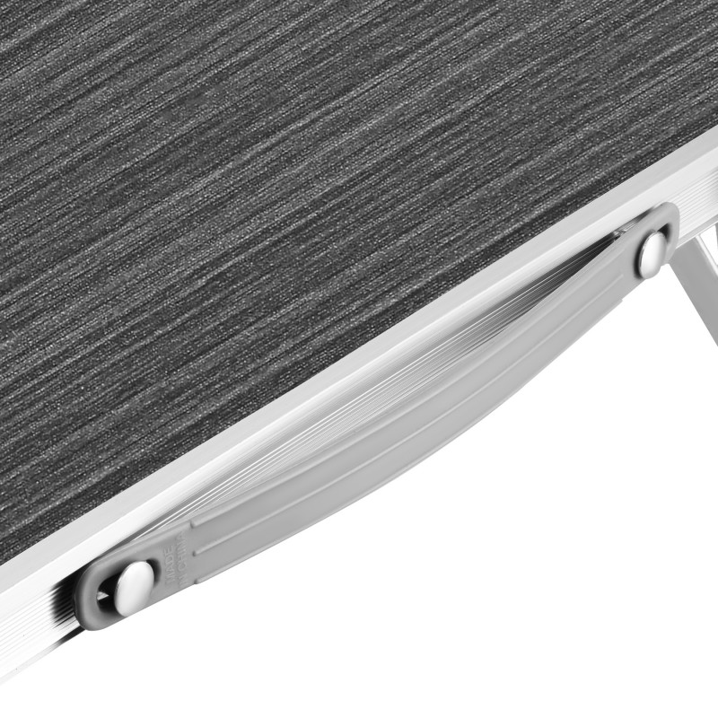 Cadrul și picioarele mesei sunt fabricate din aluminiu, asigurând o greutate redusă și o stabilitate excelentă. Aluminiul este un material rezistent la coroziune, astfel că masa nu își pierde proprietățile nici după utilizare îndelungată în aer liber. Această caracteristică face ca masa NC3402 să fie alegerea perfectă pentru utilizare în diverse condiții meteorologice.